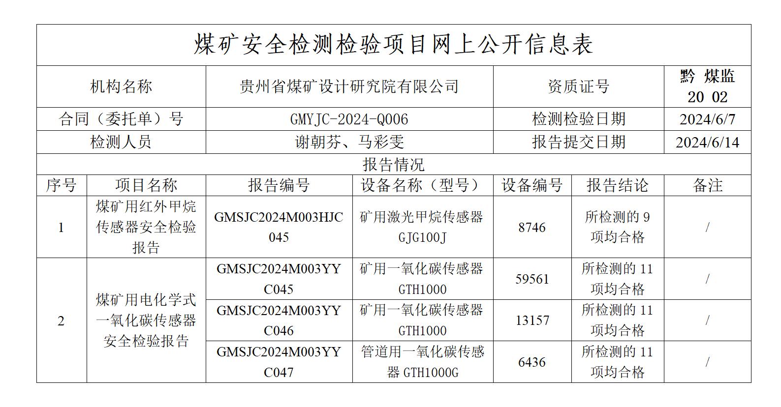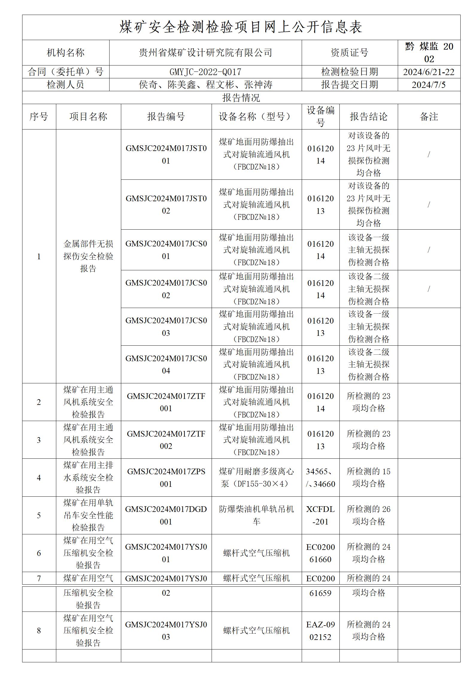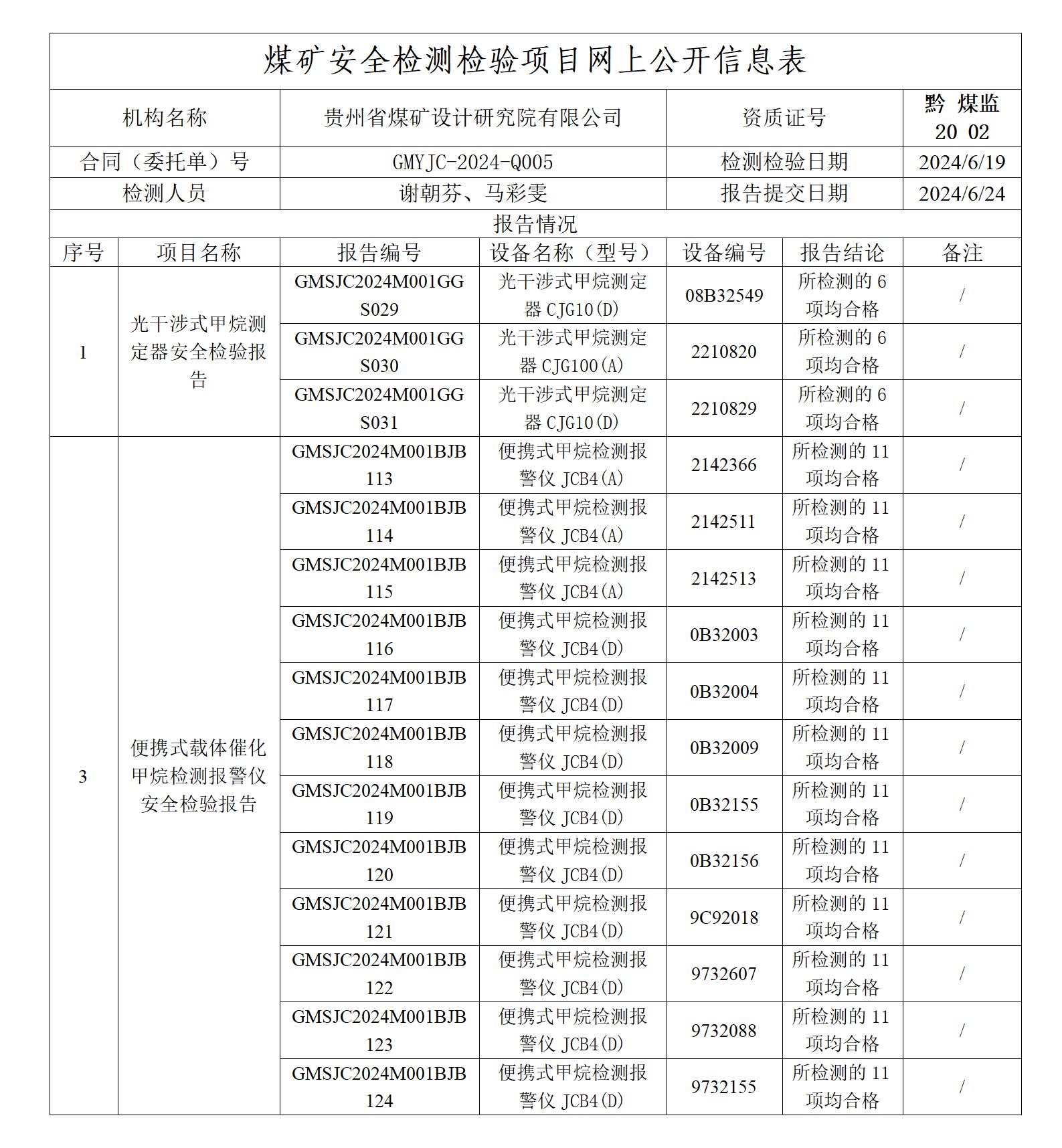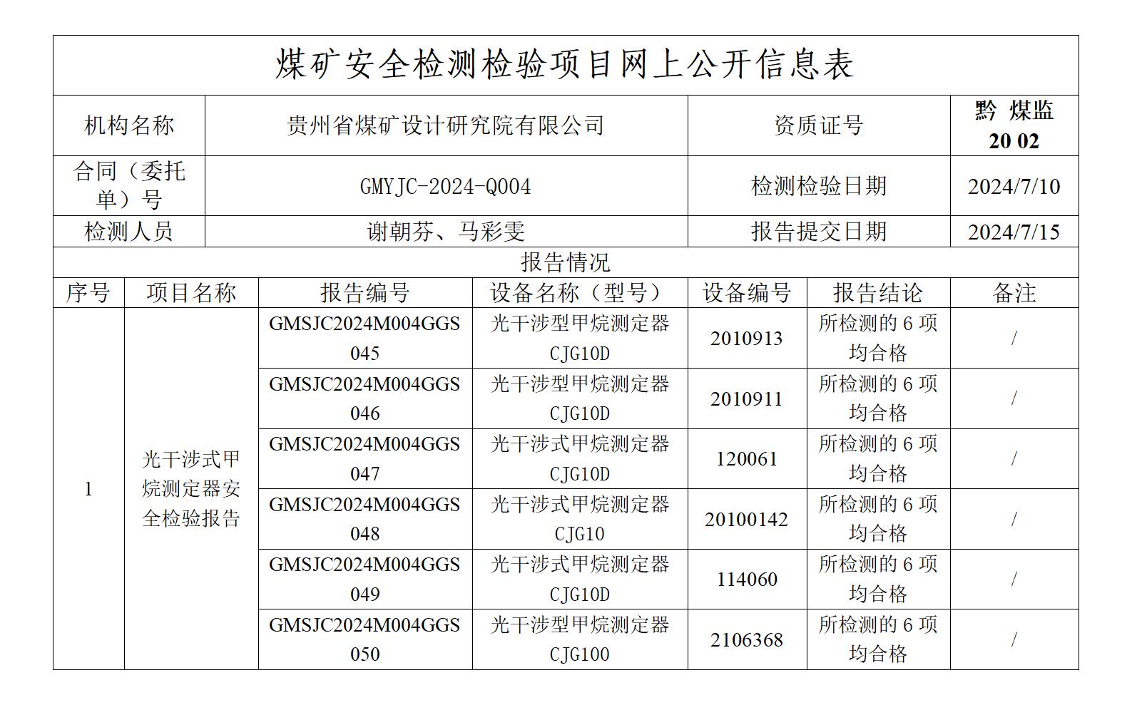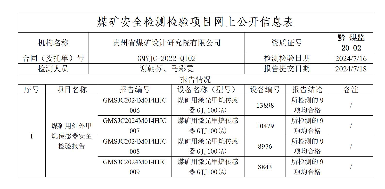 • 煤礦安全檢測檢驗項目網(wǎng)上公開信息表(2024.7.22)