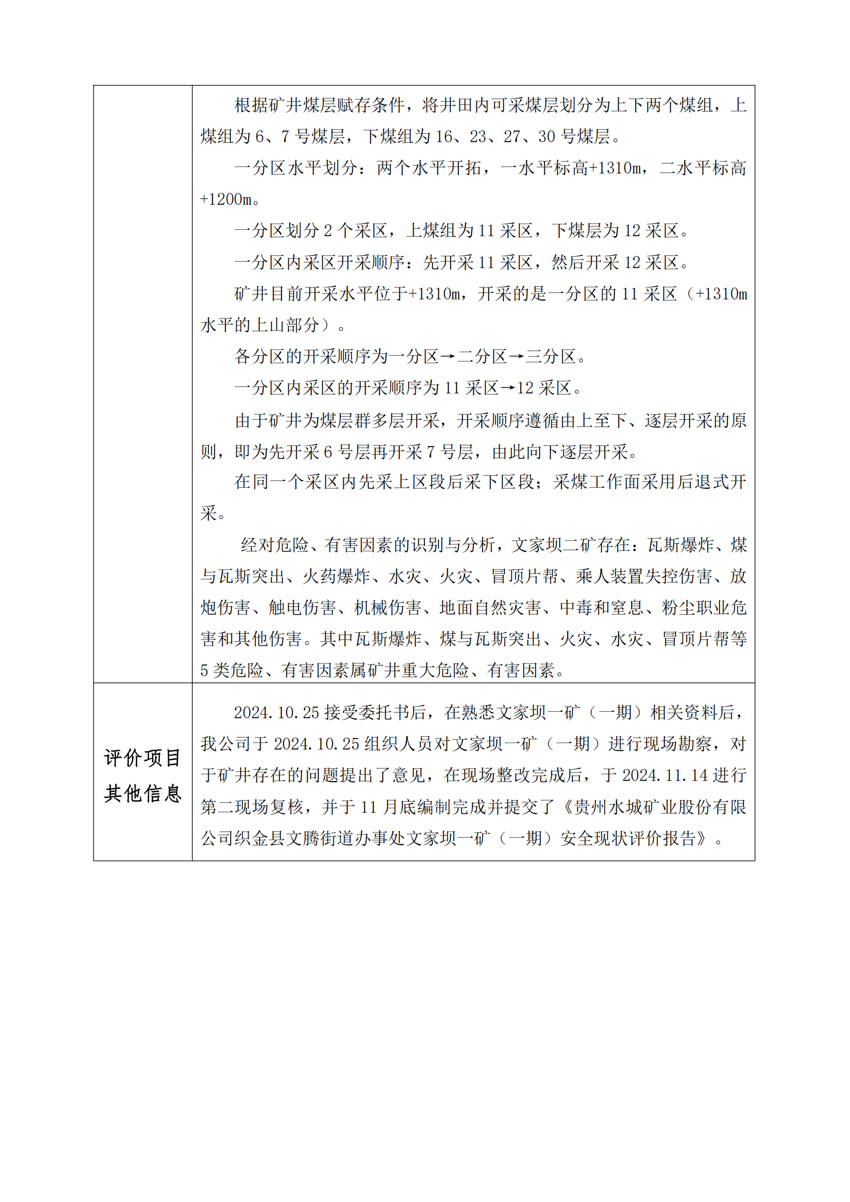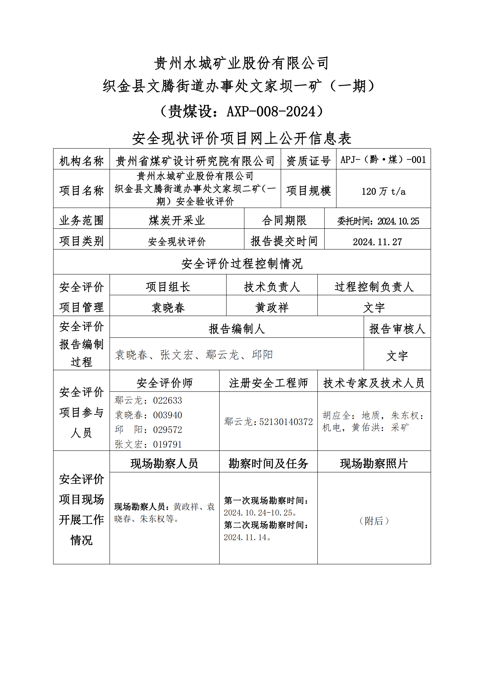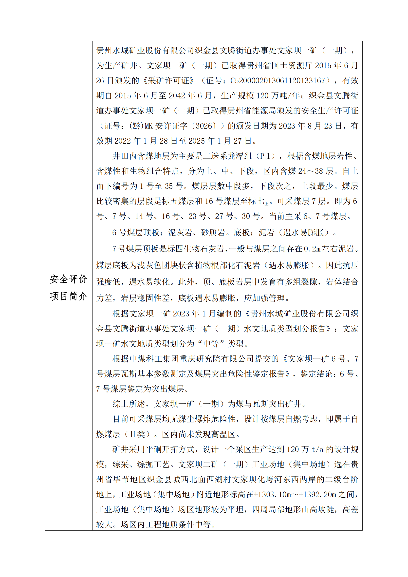 貴州水城礦業(yè)股份有限公司 織金縣文騰街道辦事處文家壩一礦(一期) (貴煤設:AXP-008-2024)